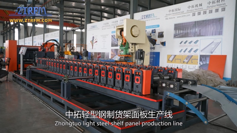 中拓輕型鋼制貨架面板生產(chǎn)線,采用的是一種多復合、多折疊、多沖孔的形式,形成一種非常好的承重性,一種多層的閉合性貨架托盤。