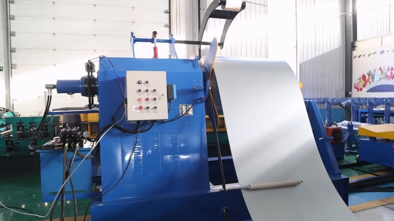 在樓承板機的工作流程中,開卷機扮演著重要角色。它負責將原料鋼卷自動開卷并供料,確保生產(chǎn)過程的連續(xù)性和穩(wěn)定性。中拓的開卷機具有自動啟停功能,能根據(jù)實際需求調節(jié)進料方向(左進料或右進料),大大提高了操作的靈活性。