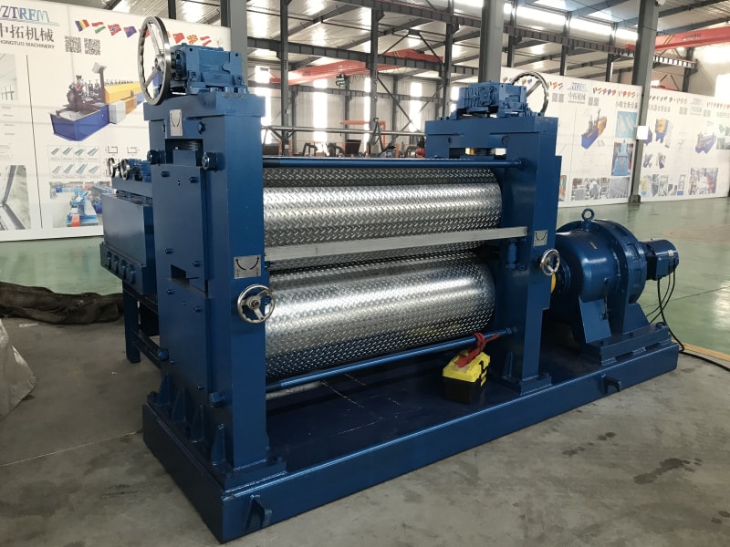 該設(shè)備主要為了給碳鋼,不銹鋼等平板設(shè)備壓花,以達(dá)到防滑等作用。該設(shè)備可以加工厚8mm,寬度2米的碳鋼板或鍍鋅板,也可以加工不銹鋼等板材。