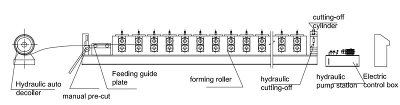 開卷→上料→成型→量長→自動(dòng)切割→成品接收