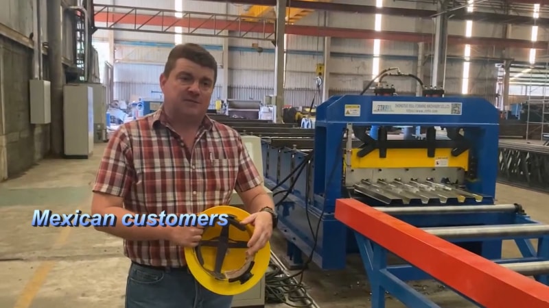 中拓樓承板設(shè)備主要由開(kāi)卷機(jī)、進(jìn)料部分、成型主機(jī)、成型切斷裝置、液壓站、電腦控制柜等幾部分組成。