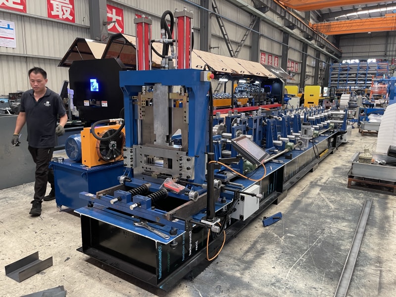 巴西客戶全自動(dòng)PLC觸摸屏尺寸可調(diào)節(jié)CZ型鋼設(shè)備